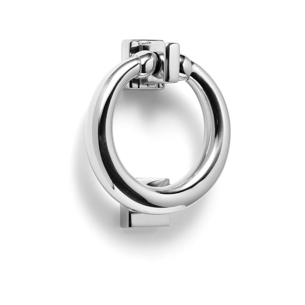 Classic design ring door knocker. Made from the finest materials with a combination of the latest technology and hand craftsmanship. Employing a high quality plating process to ensure a flawless finish